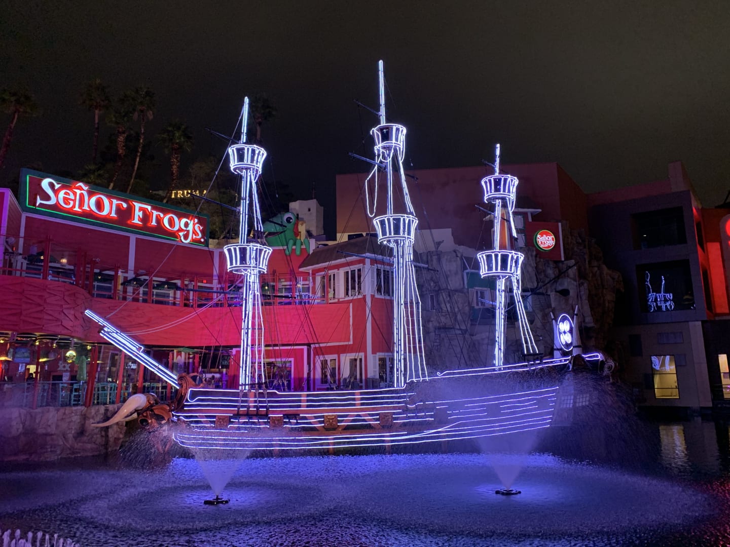 Schiff vor dem Hotel-Eingang