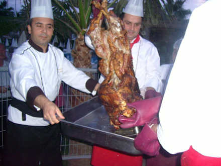 In einem Erdloch wurde das Lamm zubereitet. Es schmeckte vorzüglich und der Chefkoch forderte die Gäste extra auf, dass sie Fotos machen konnten. Vorbildlich!