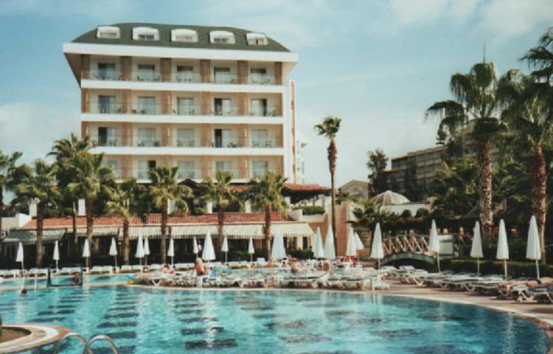Blick vom Pool zum Hauptgebäude