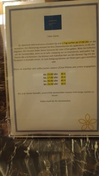 Die Tabelle für die Zuzahlung für das Zimmer wenn man es am Abreisetag verlängern will.