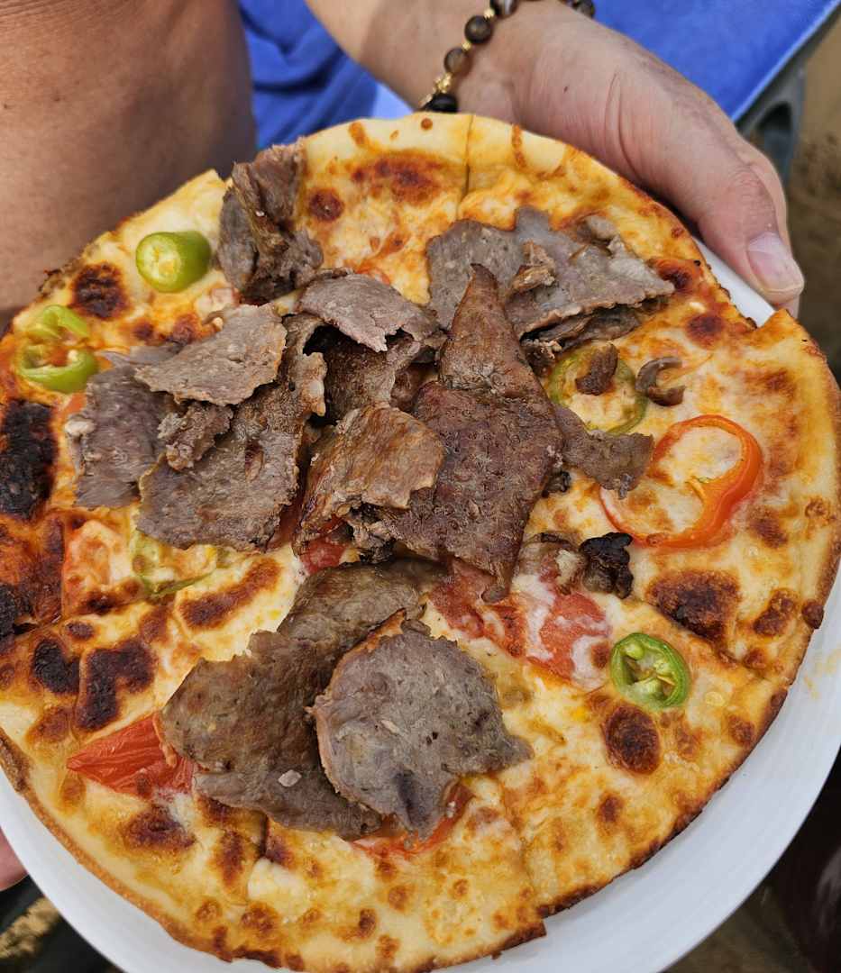 Leckere Pizza mittags am Strand