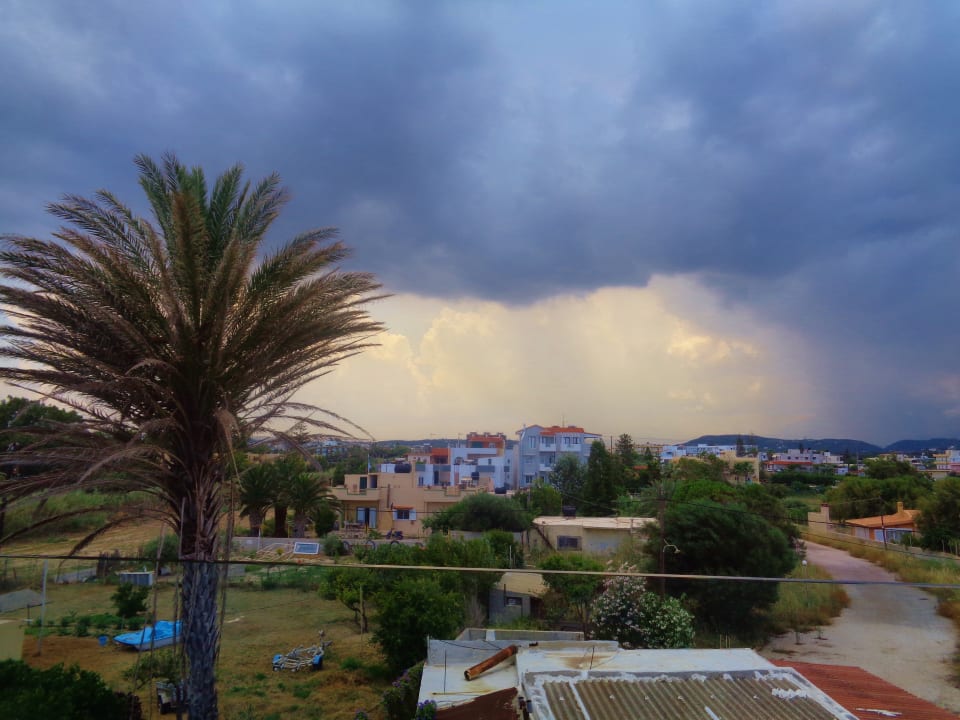 Blick vom Zimmer 22 aus ins Landesinnere, einmal hat es kurz geregnet