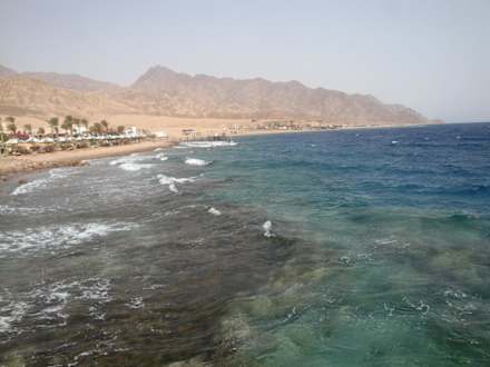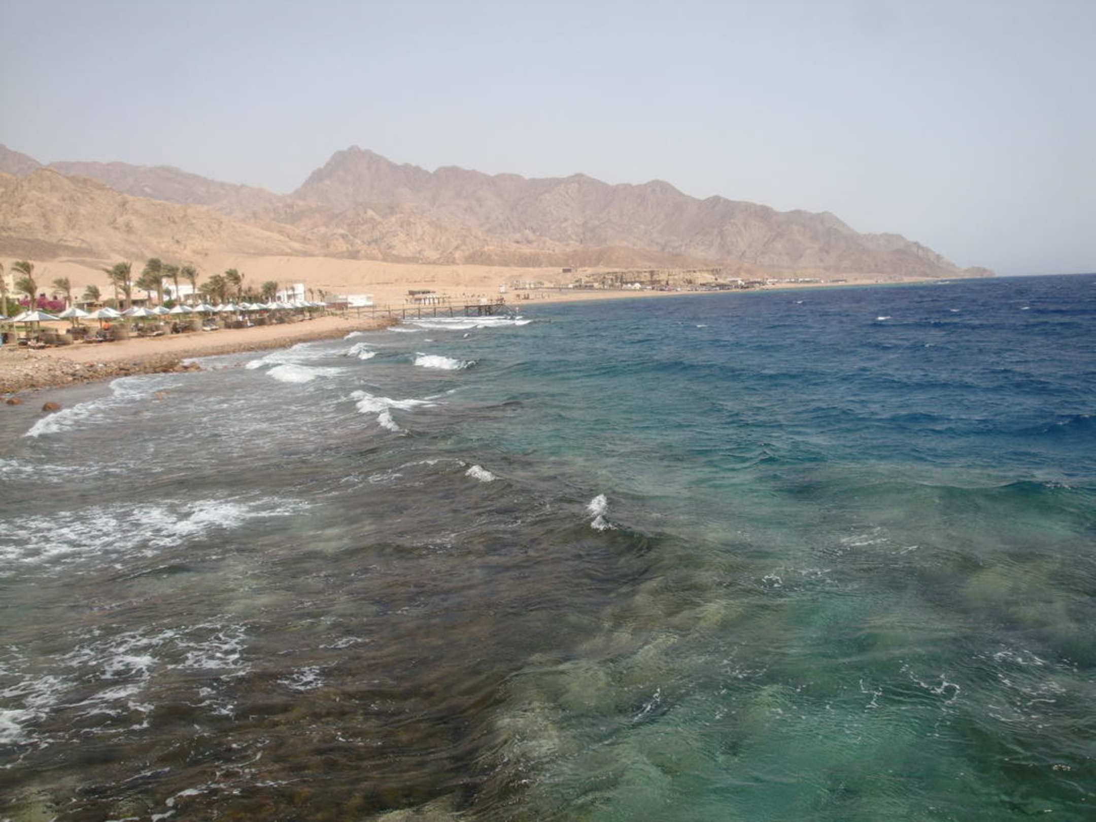 Widok z molo na plażę w kierunku BlueHole