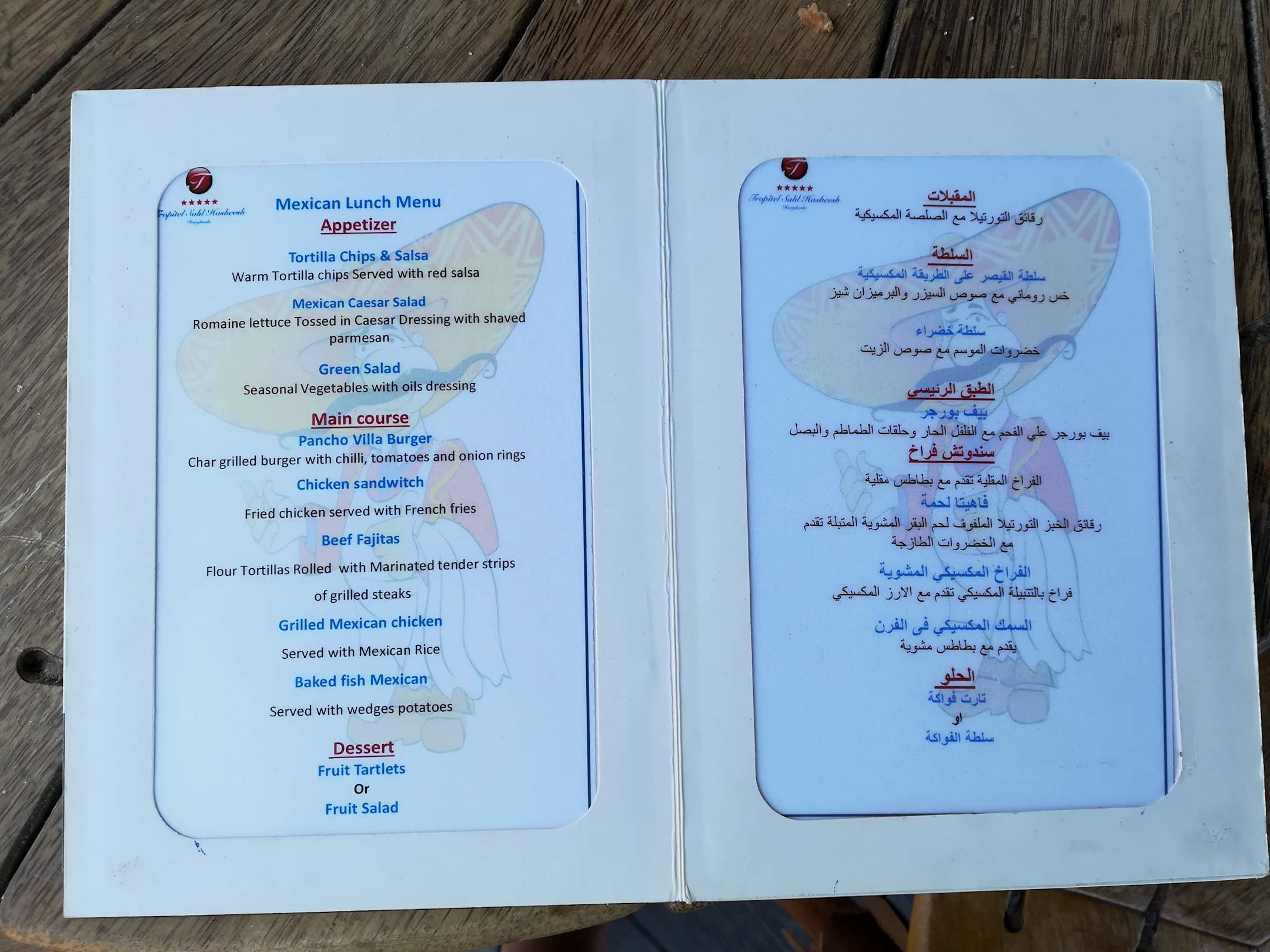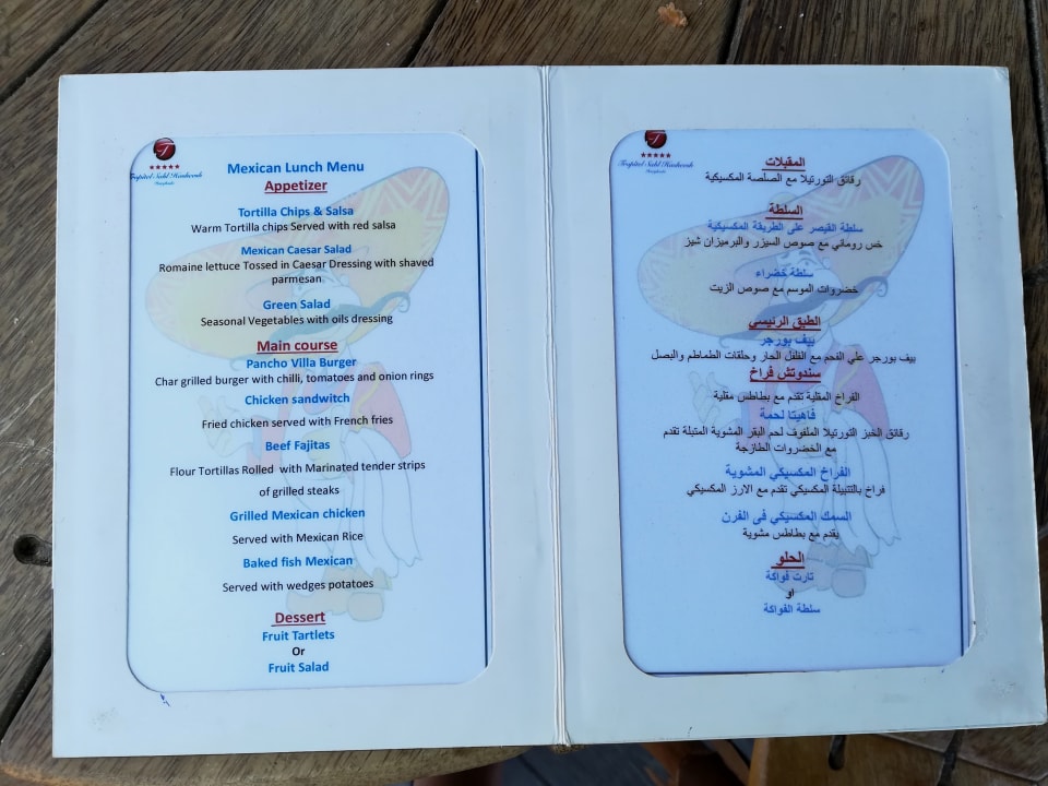 Die Mittagskarte vom Mexikanischen Restaurant.