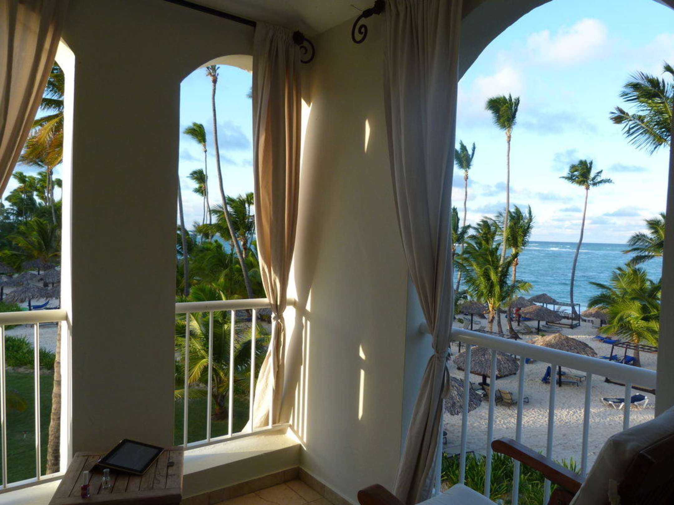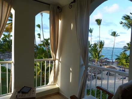 Blick vom Balkon unserer Suite über den Strand zum Meer