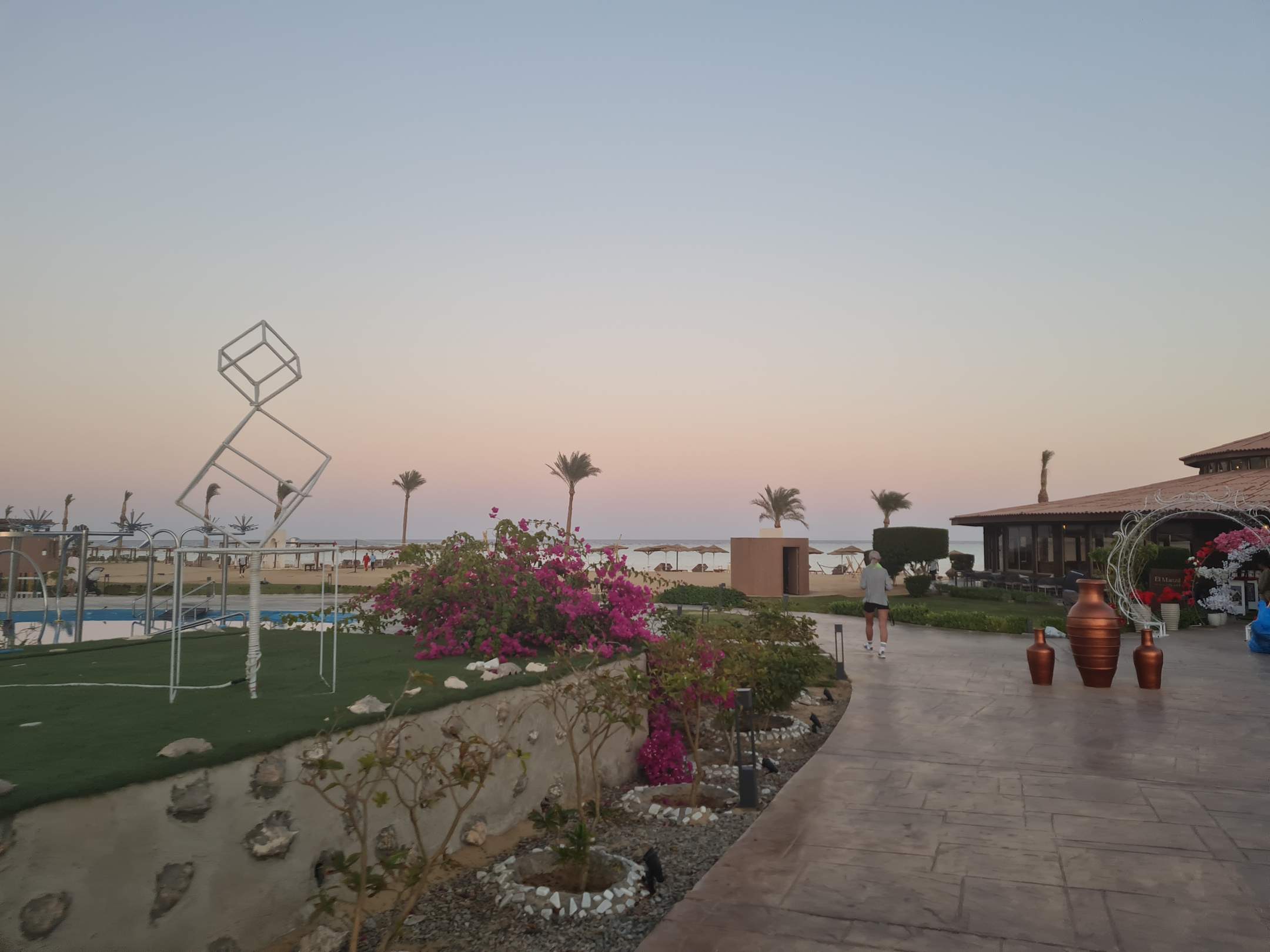 Ein toller Blick auf die Anlage mit einem Sonnenuntergang