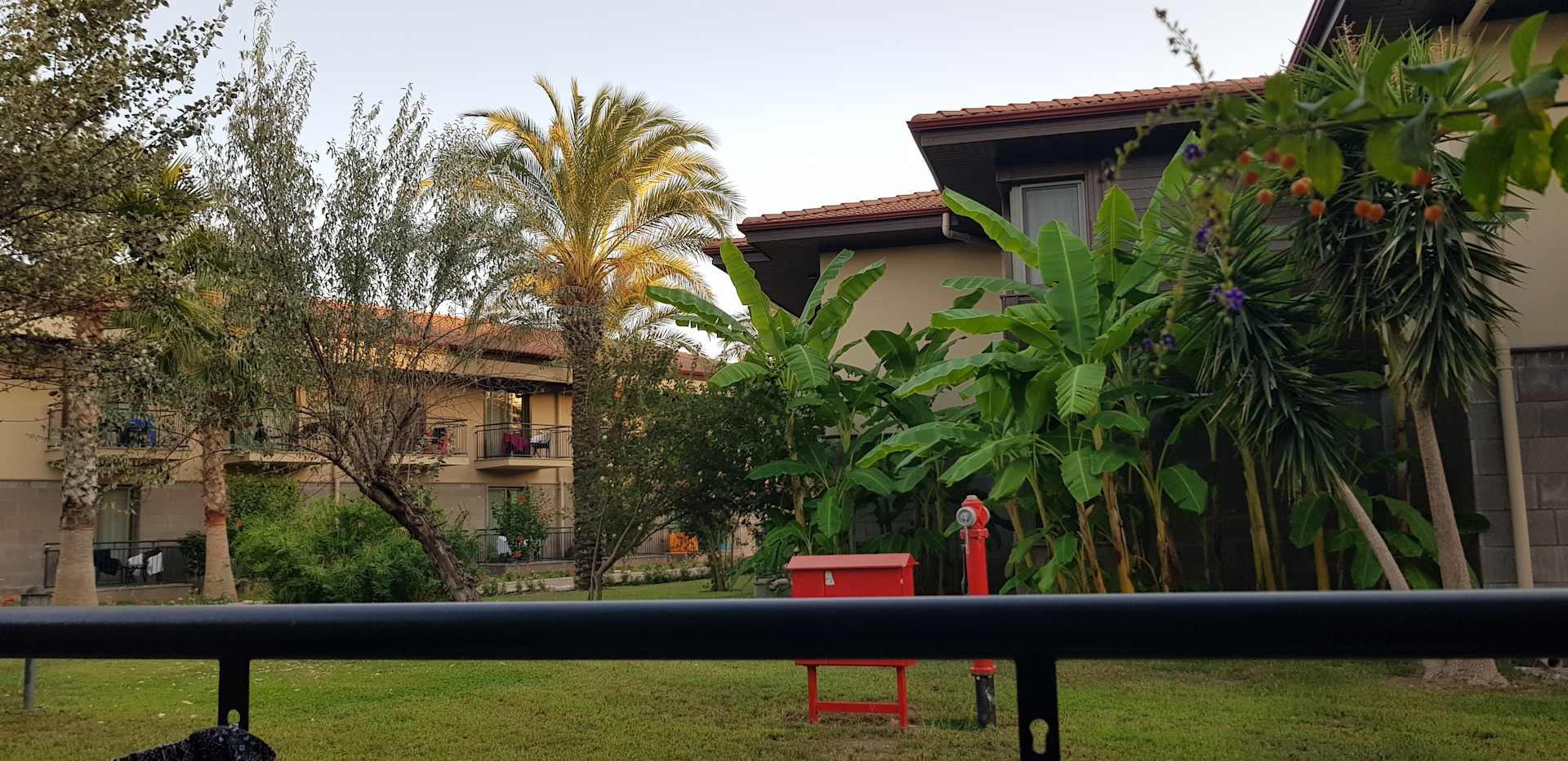 Aussicht vom Zimmer in die Gartenanlage