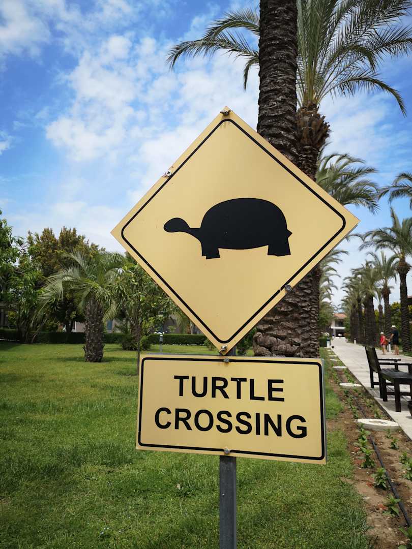 Gartenanlage"Turtle crossing" - wir mussten schmunzeln. Angeblich gibt es sie dort wirklich - wir hatten leider kein Glück...