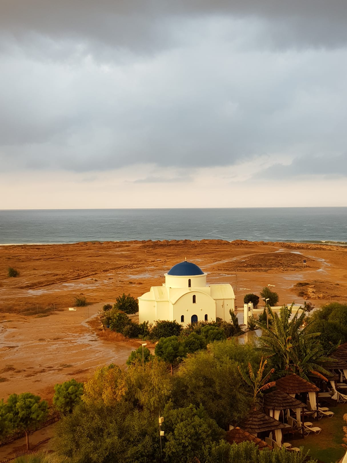 Blick aus der Suite im letzten Stock: Kirche, "Garten" und das Meer