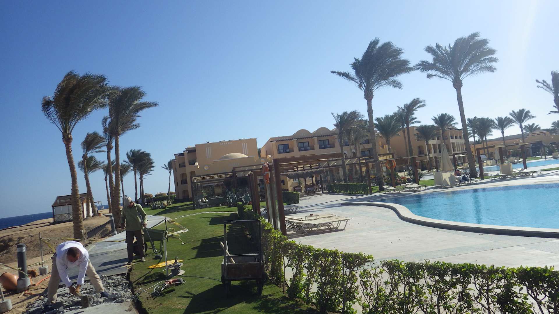 Baustelle mit Presslufthammer und Trennscheibe gür die desolaten Wege - Achtung es gibt noch einige Stolpperfallen - sehr laut hallte es durch die kleine Samaya-Anlage - Lärm am Pool und auch am Strand - keine Erholung !!!