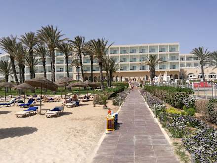 Blick vom Strand aus auf das Hotel