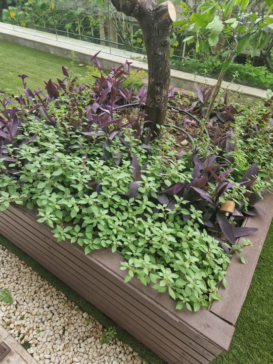 GartenanlageLeider sind die Grünanlagen im Bereich der 1000er Zimmer nicht gepflegt. Durch den Kunstrasen spriest das ganze Unkraut.