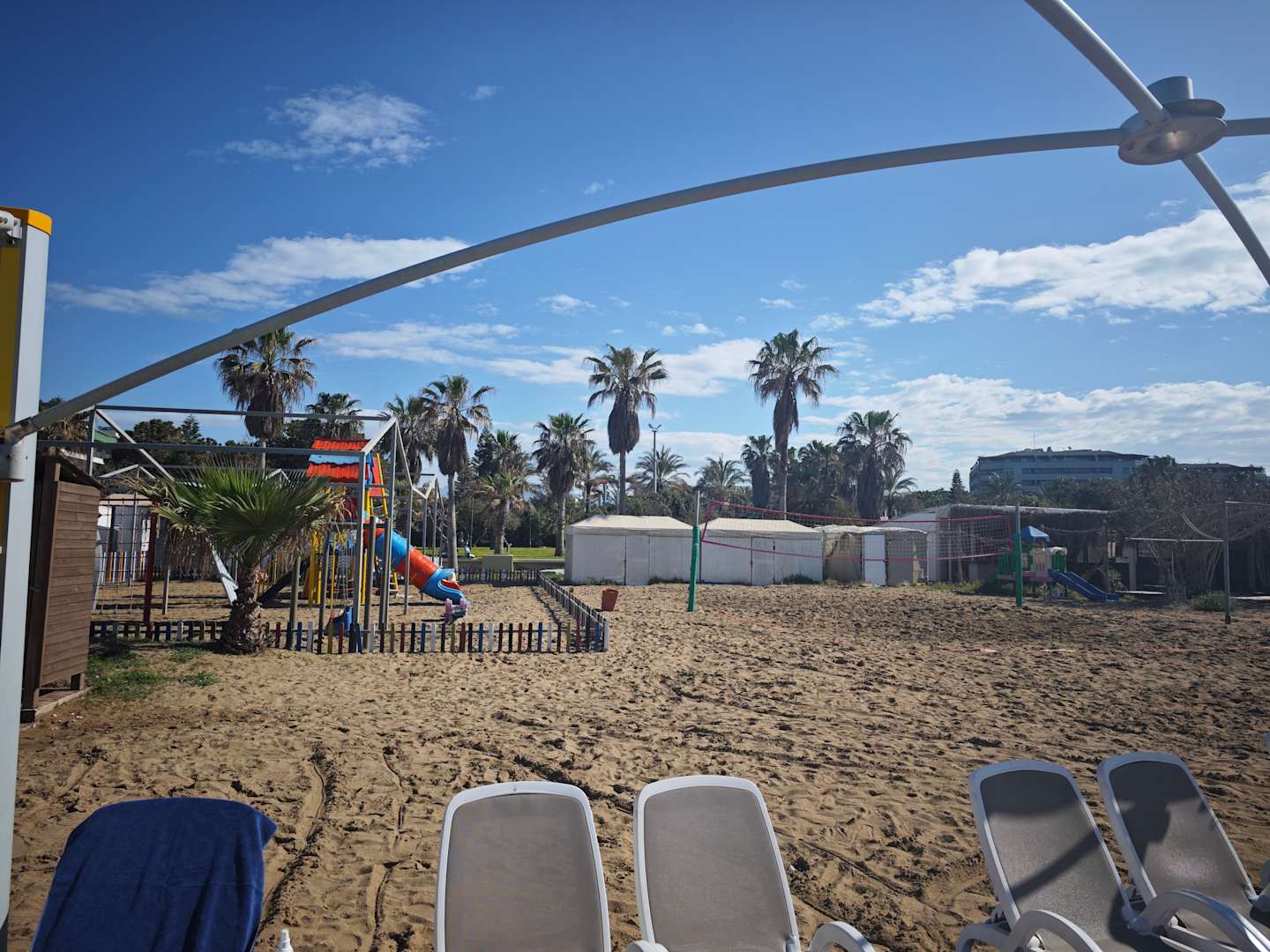 Strand mit Blick auf den Spielplatz