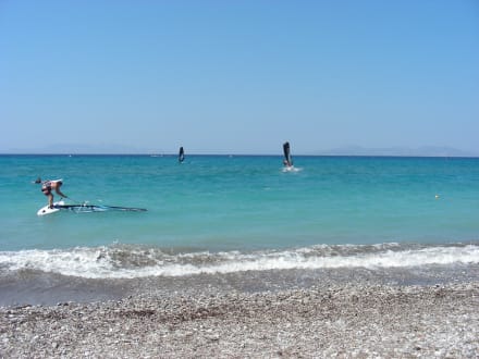 Theologos liegt an der windigen Westküste, wo viele Surfer und Kiter den Wind genießen. Eine Surfstation und Surfschule liegt direkt am Eingang von Hotel zum Strand.