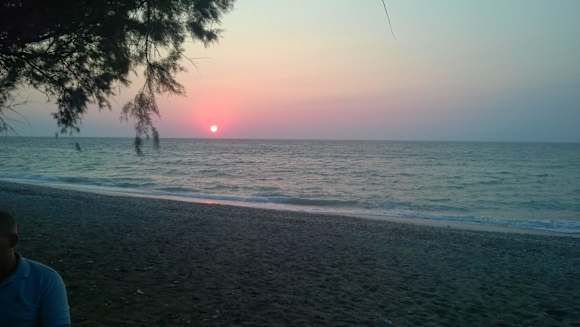 Sonnenuntergang beim Abendessen an der Beachbar