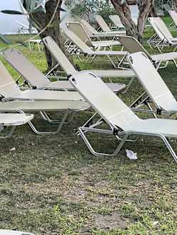 So sieht es morgens um den Pool Bereich aus. Alles steht kreuz und quer. Die liegen nur ekelig