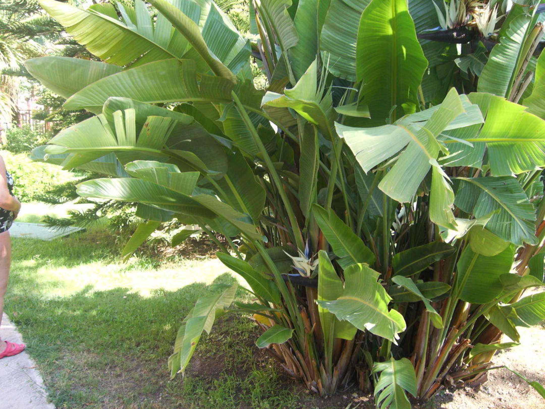 Strelizien zwischen einer Bananenstaude. Wir kennen diese nur in der Farbe "orange". Wer es nicht selbst gesehen hat, glaubt dies nicht. Sie kann bei Villa 19 gefunden werden.