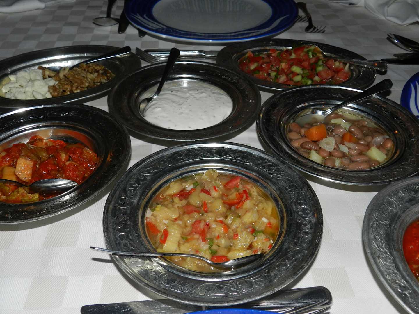Eine Vorspeisenauswahl im Türkischen à la carte Restaurant in der Side Bar. Dazu wird ein leckeres Brot gereicht. Sehr zu empfehlen.