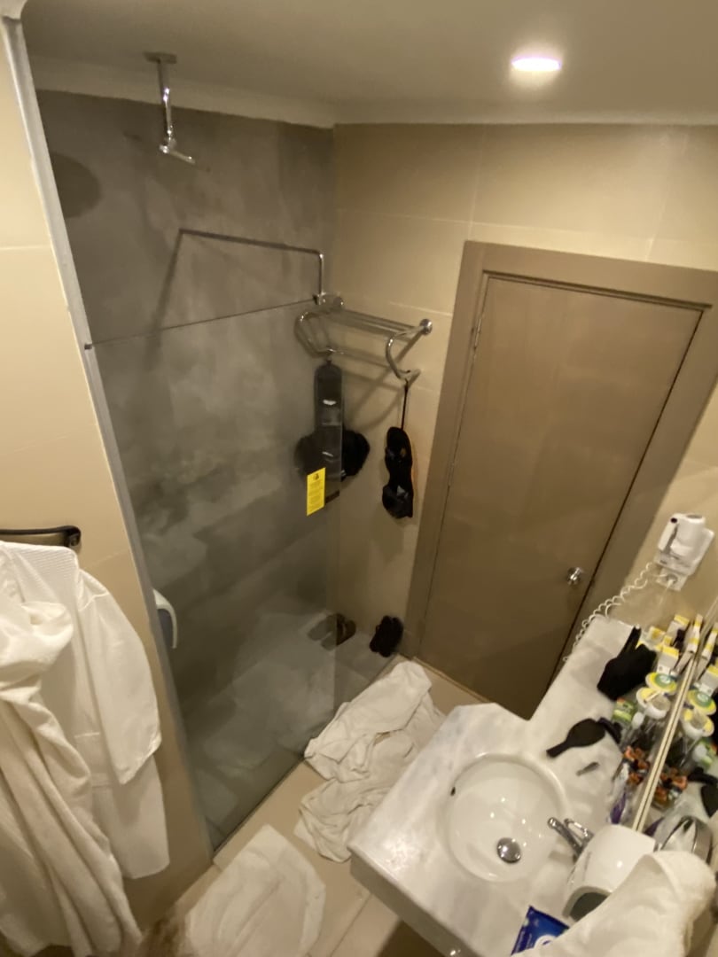 Badezimmer, unten rechts war die Scheibe leider undicht und das Silikon nicht mehr schön anzusehen.