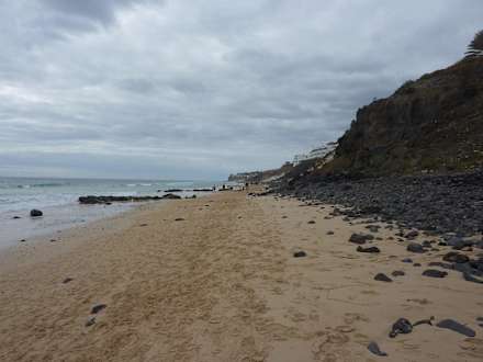Bei Flut geht das Wasser hoch bis zu den Steinen, daher können hier keine Strandliegen stehen. Zu unserer Reisezeit war tagsüber wenig Ebbe. Gezeiten kann man in der Lobby nachsehen