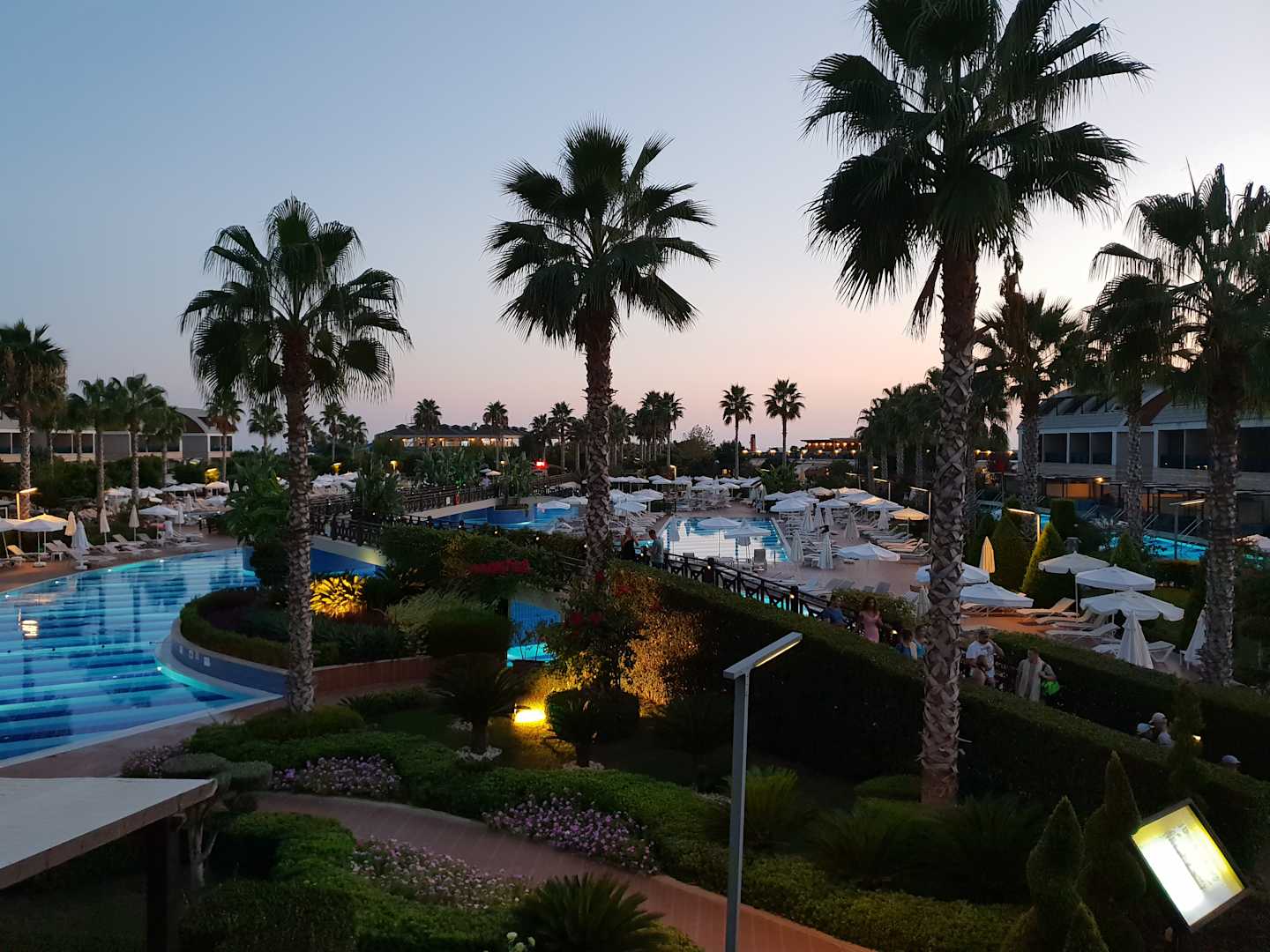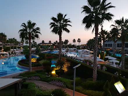 Pool und Anlage am Abend