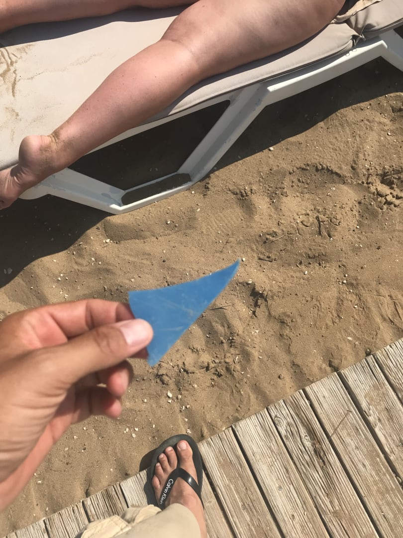 StrandSah erst klein aus, als wir diese Plastik Scherbe neben eines Gastes, aus dem Strand gezogen haben staunten wie nicht schlecht..