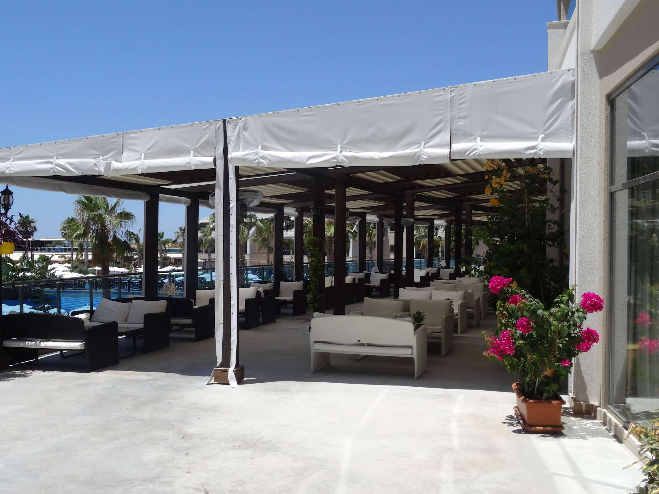Sitzmöglichkeiten oberhalb der Pools