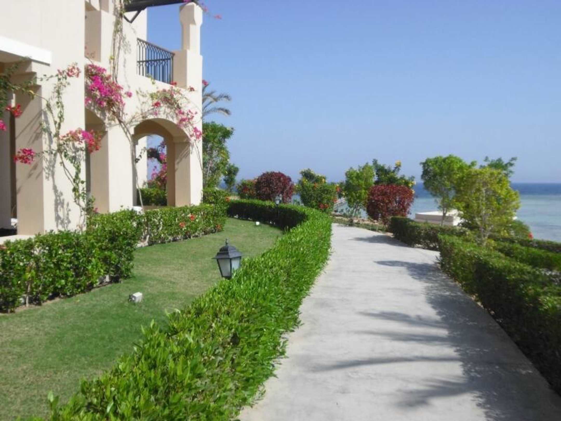 Egal wo man in der Anlage herumspaziert, alles super clean und romantisch! Gute Laune pur. (Hier der Blick zum 200m langen Steg zur Lagune, supi)