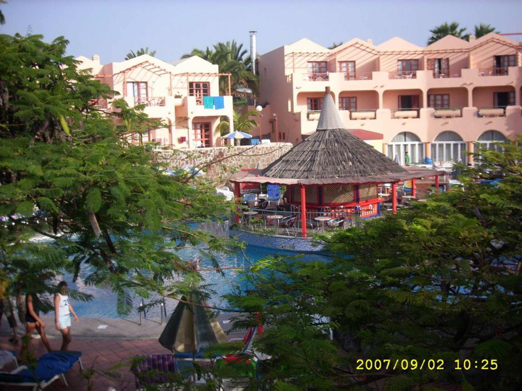 Blick vom Balkon auf Poolbar