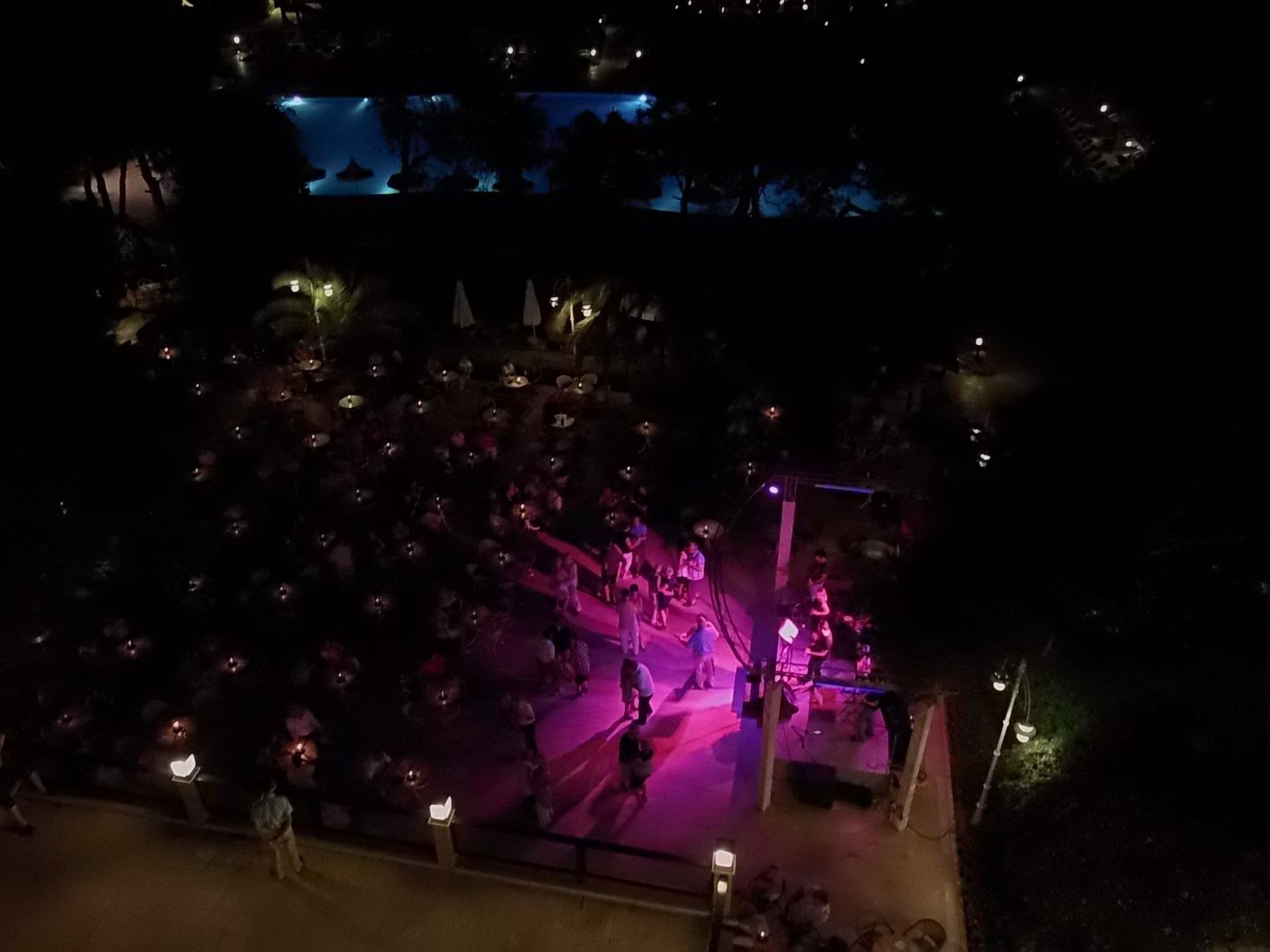 Dröhnende Live Musik vor Zimmer mit Meerblick