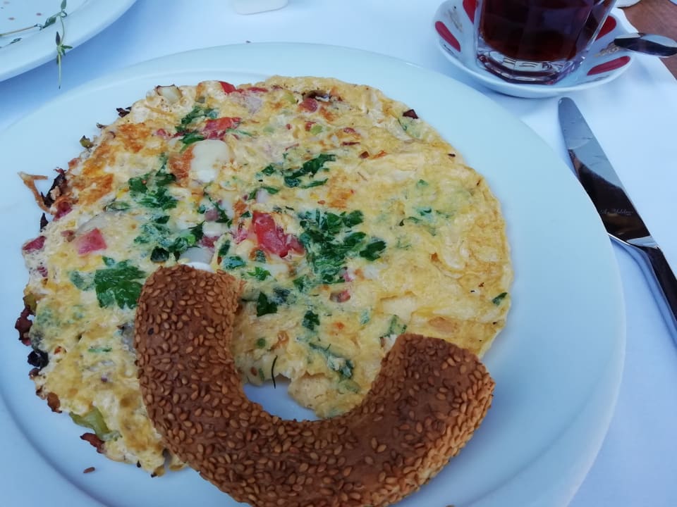 Frisch zubereitetes Omelett mit Wunschzutaten