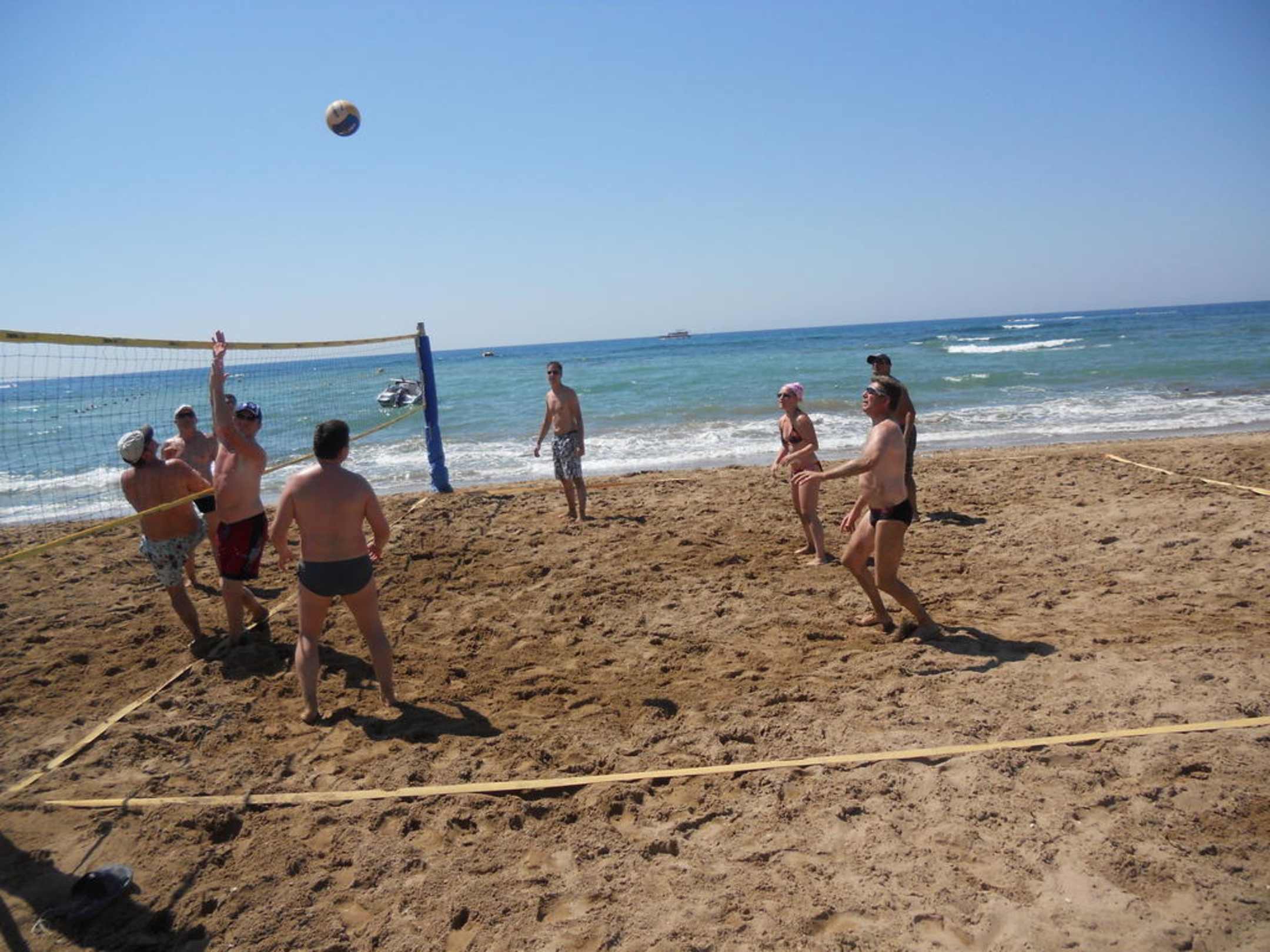 Beachvolleyball 2mal am Tag, um 11 Uhr und um 4 Uhr nachmittags bei 40 Grad