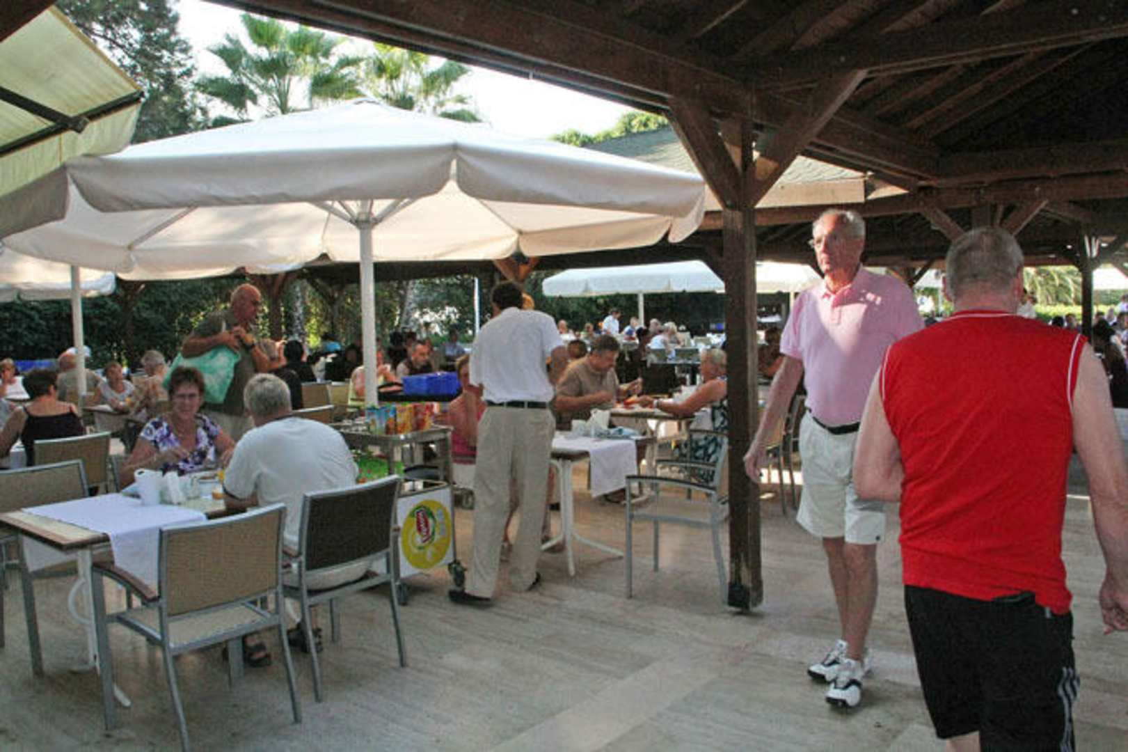 Man kann am Mittag auch draußen bei kleinerem Angebot gut Speisen