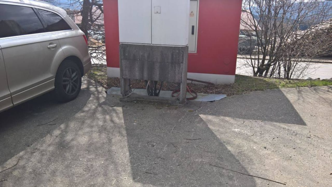 Brüchiger Beton mit freiliegenden Kabeln. Wahrscheinlich auch noch Kraftstrom.