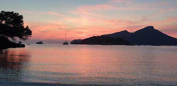 Sonnenuntergang vom Hotelstrand aus mit Blick auf Dragonera