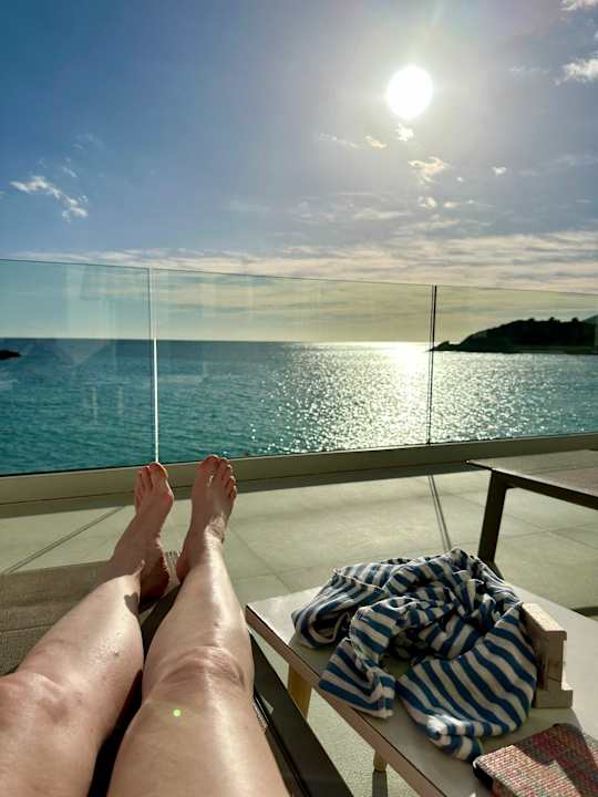 Terrasse vor dem Pool (sehr sehr klein) und Wellnessbereich