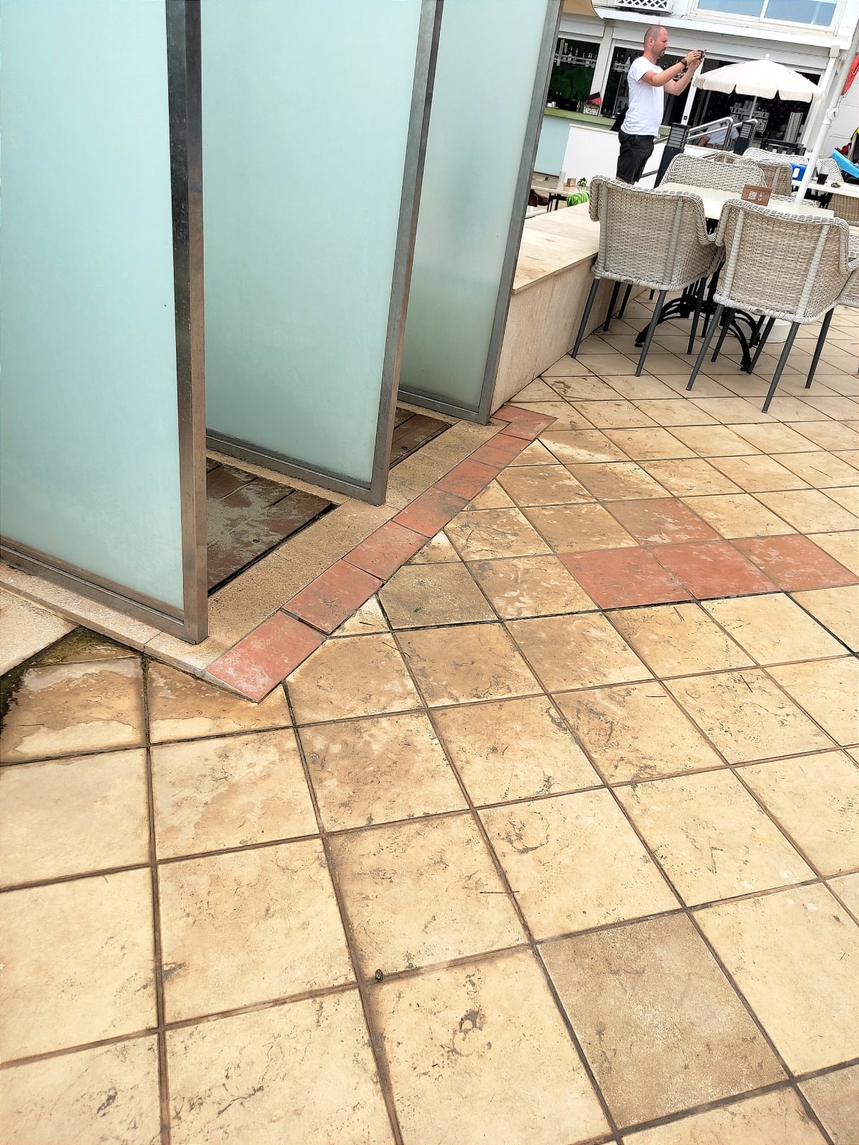 Sand vor den Poolduschen - je später desto mehr.