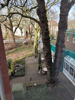 Blick vom Zimmer auf den Garten