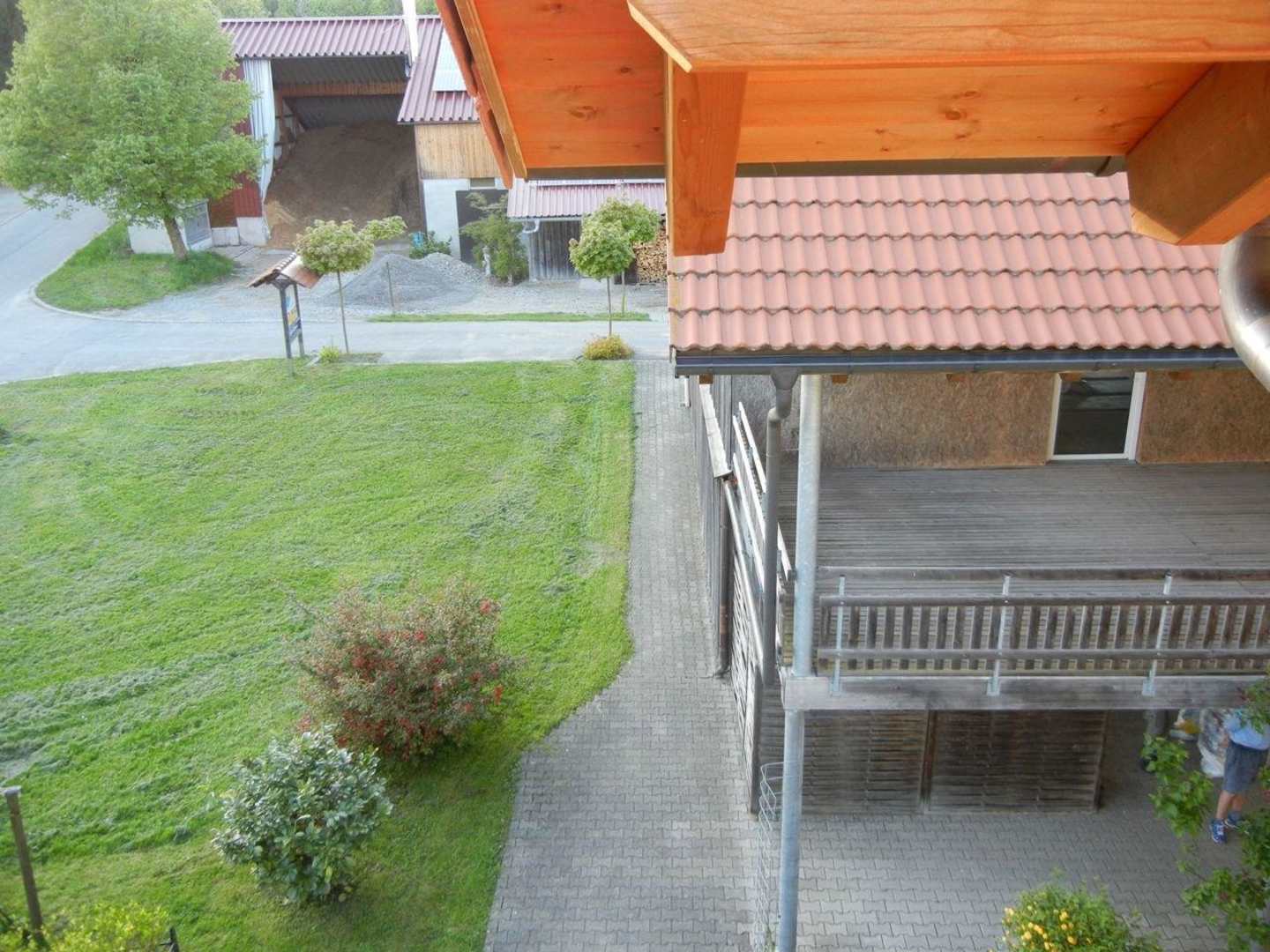 Aussicht vom Balkon: Müllplatz rechts unten :o(