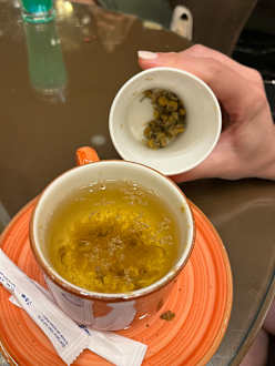 Hier gibt es kein Teebeutel. Wir durften den Teesatz mit einem Löffel rausfischen.
