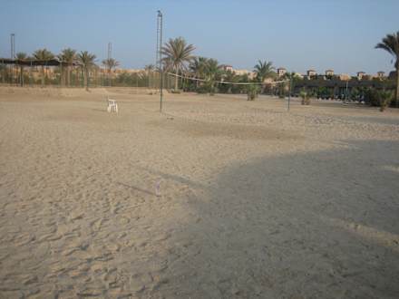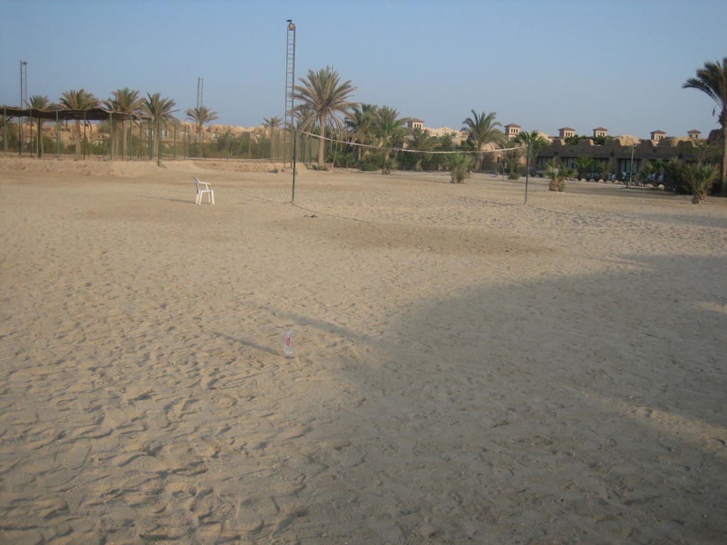Das Volleyballfeld mit dem EisenIm Hintergrund ist das Volleyballfeld zu erkennen, davor die Flasche mit dem Moniereisen.