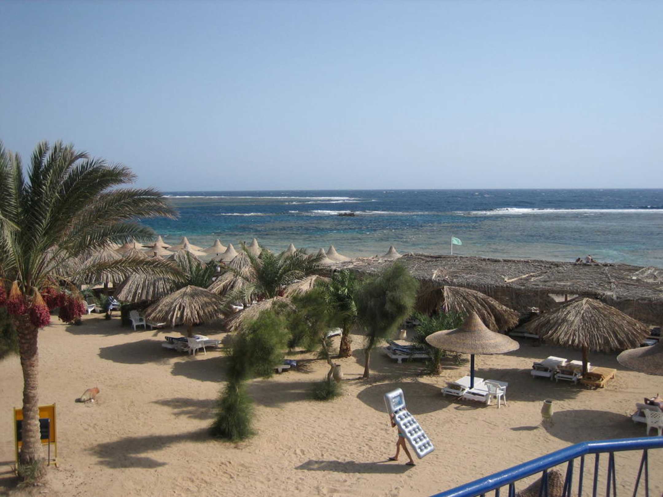 Sonnenschutz am StrandBlick von der Brücke zum Strand.
