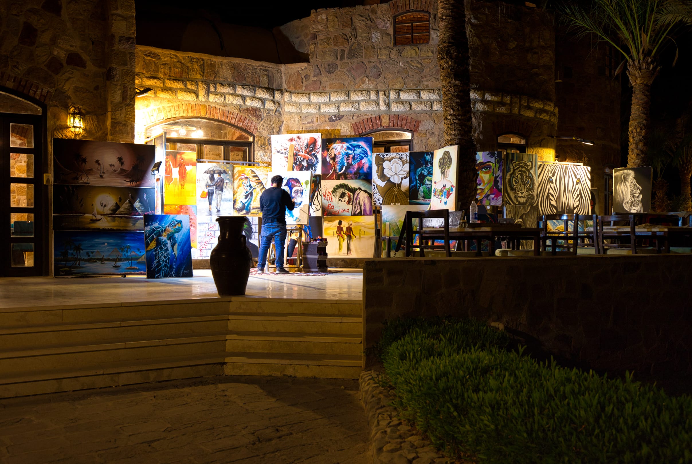 Der Hotelmaler steht am italienischen Restaurant