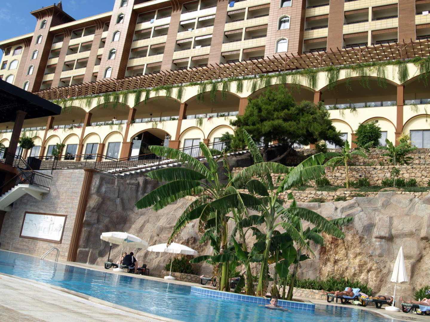 Spa- und Wellnessbereich von außendas sieht man vom Liegestuhl aus, wenn man mal nicht auf's Meer gucken will