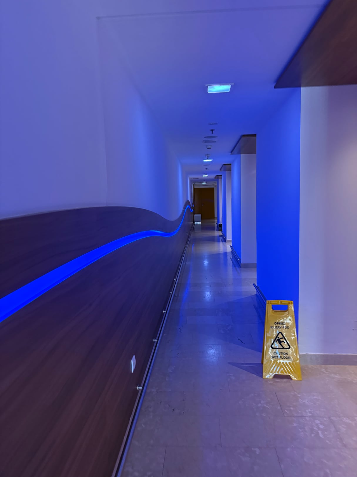 StrandGang durch dunklen Hotelflur im Nachbarhotel zum Strand … als Frau fühlt man sich hier nicht so sicher, Rutschgefahr