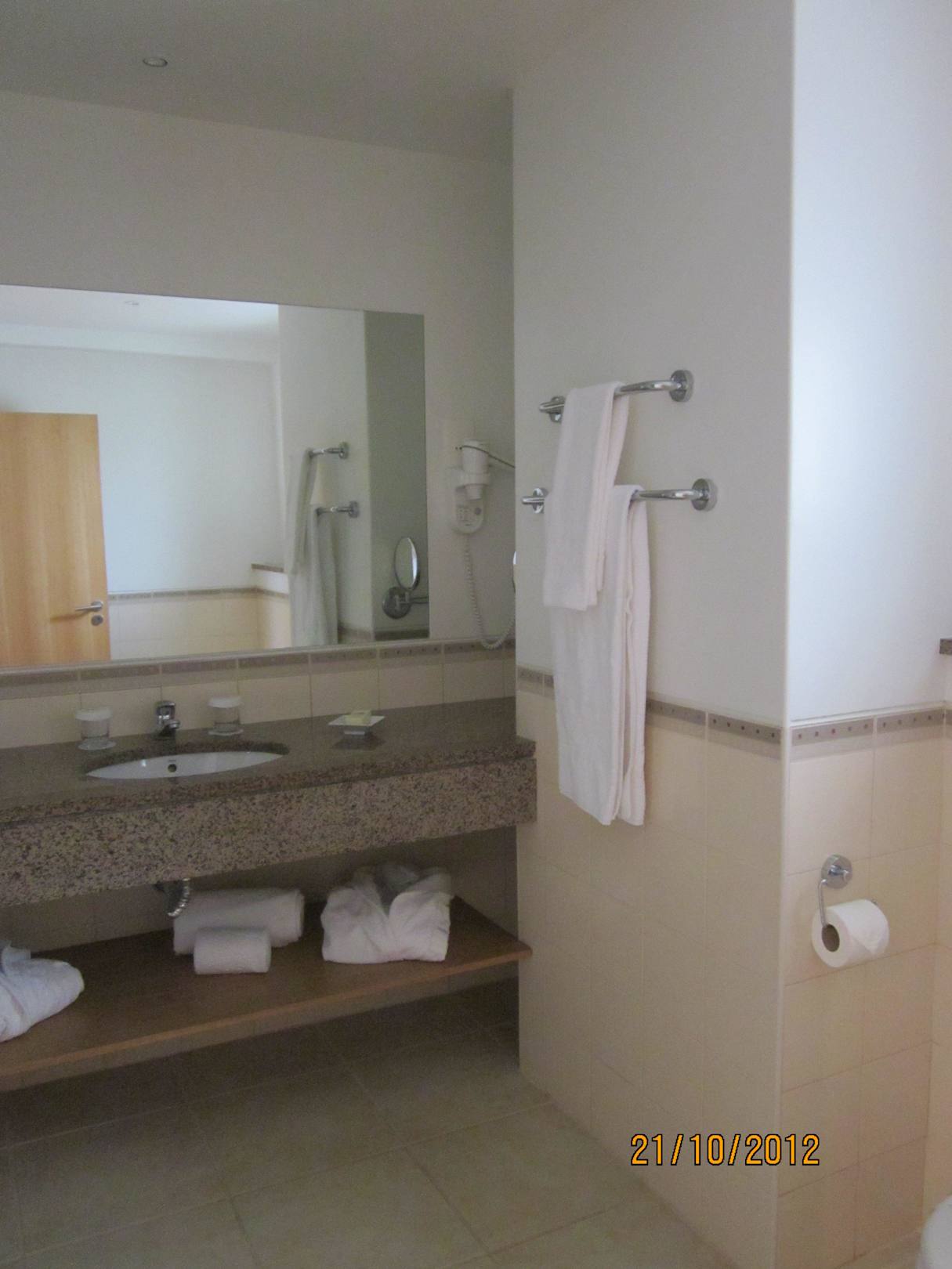 Fön, Kosmetikspiegel und Handtuchstange