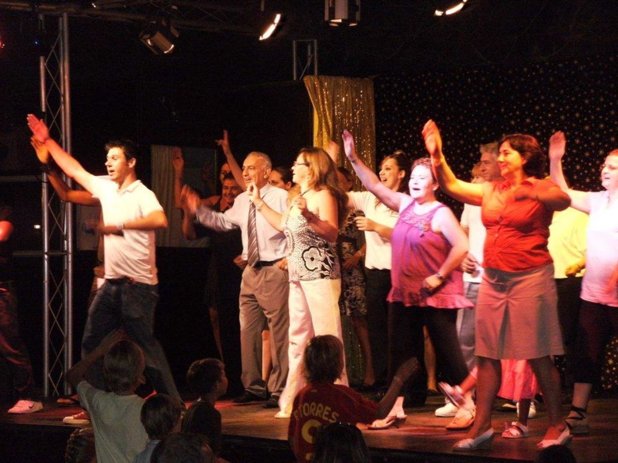 Das Hotel veranstaltete einen Touristentag bei der abendlichen Show sieht man den tanzenden Chefanimateur Coco mit dem Hoteldirektor sowie verschiedene Angestellten de Valentin Parks