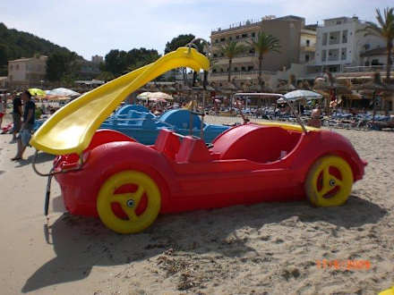 Mit diesem Trettböttchen haben die Kids ihren Spass Im Meer.