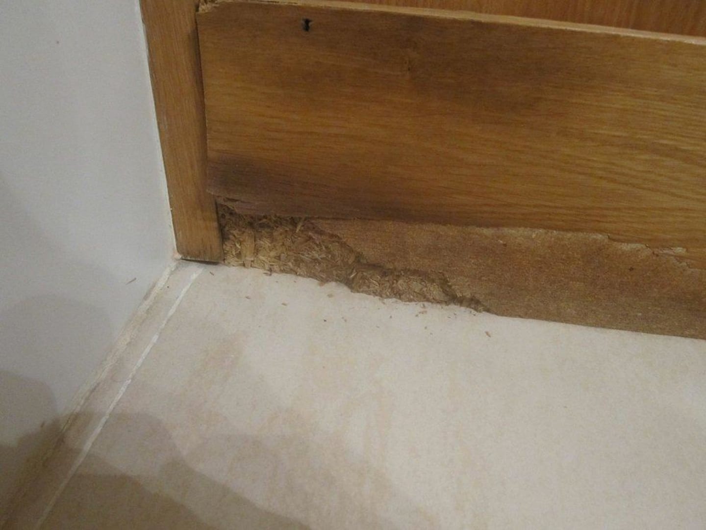 Verkleidung im Bad durch Plastikhocker verdeckt