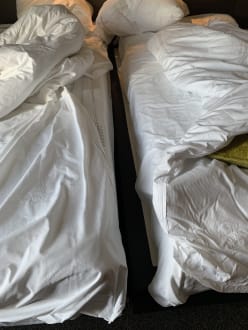 ZimmerSo sieht das Bett aus wenn Mann wach wird eine Katastrophe nachts immer wieder zusammen geschoben .